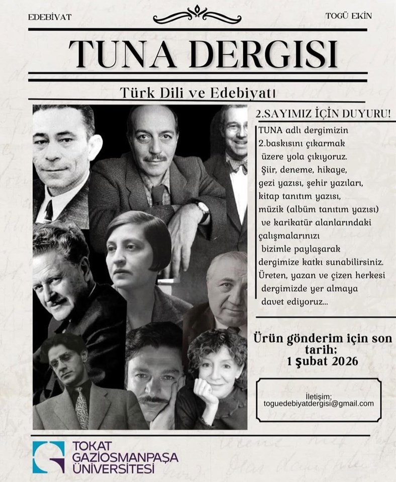 Dergimizde yayımlanmasını istediğiniz yazılarınızı 01.02.2026 tarihine kadar toguedebiyatdergisi@gmail.com e-posta adresine gönderebilirsiniz.